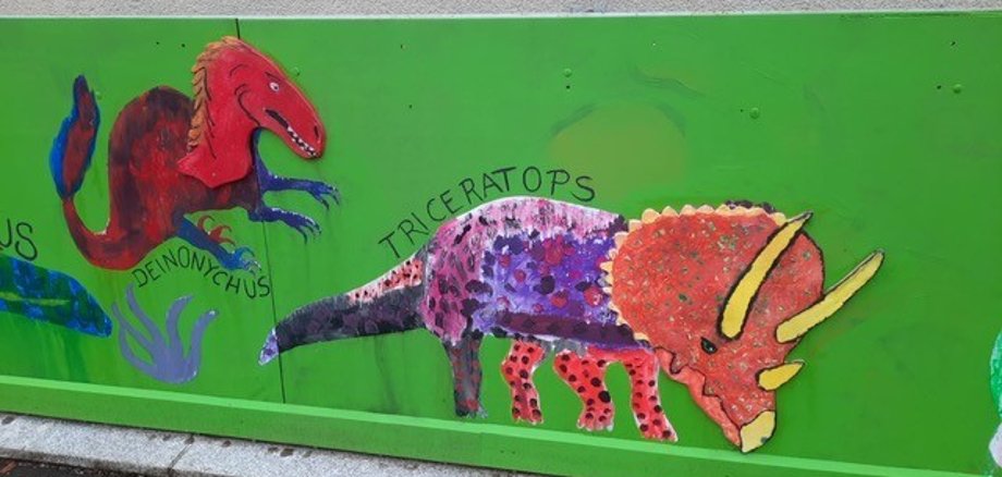Dinosaurier am Bretterzaun