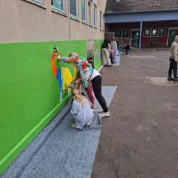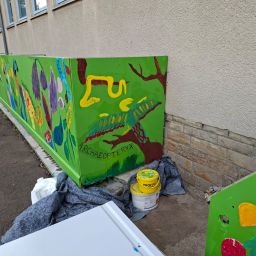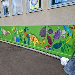 Es war rundherum ein gelungenes Projekt, das allen Beteiligten viel Freude bereitete. On Top wurde der Bretterzaun nicht nur repariert sondern zum Kunstobjekt und farbenfrohem Hingucker des GSV Eisbergen-Veltheim. Ein großer Dank der Schule geht natürlich an den Hausmeister Stefan Berg und seiner Tochter Elisa , die auch viel eigene Ressourcen in das Projekt steckten. Außerdem geht ein Dankeschön an den Förderverein in Veltheim vom GSV die das Projekt natürlich unterstützten und sich außerdem bei Stefan Berg und seiner Tochter Elisa nochmal im Namen der ganzen Schule herzlich bedankten.