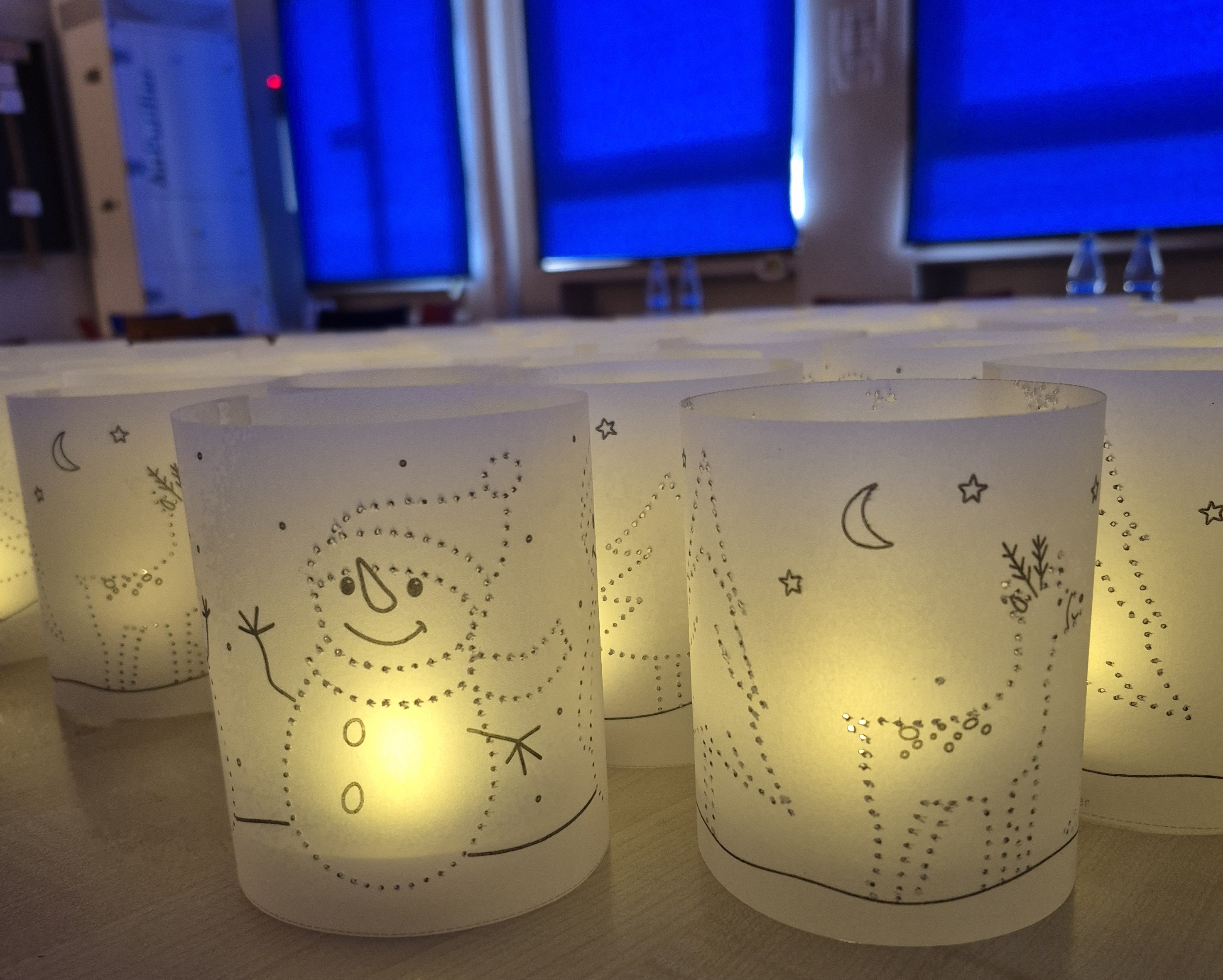 Mittlerweile ist es schon eine liebgewordene Tradition: 2020 mit Corona gestartet, basteln, kleben und werkeln die Kinder des GSV Eisbergen-Veltheim am Teilstandort Veltheim jedes Jahr in der Vorweihnachtszeit für die BewohnerInnen des Seniorenzentrums Haus Anima in PW-Holzhausen. Auch in diesem Jahr wurde auf Initiative des Offenen Ganztags im Kunstunterricht und am Nachmittag in der GT-Betreuung voller Eifer gebastelt. Entstanden sind drei musikalische Adventskalender (je einer für jede Station des Seniorenzentrums), sowie ein geprickeltes Windlicht für jede*n BewohnerIn, die Ende November an die Einrichtung übergeben wurden.
