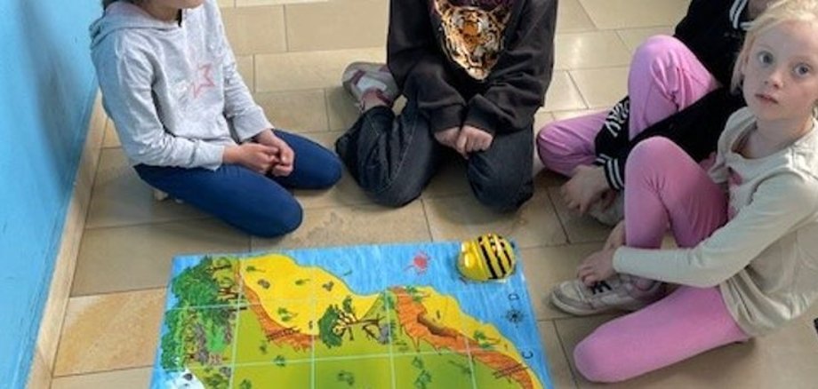 Endlich war es nun soweit. Die Drittklässler durften die kleinen Roboter "Beebots" zum Leben erwecken. Zunächst wurde anhand eines Sportspiels entdeckt, wie man etwas, in diesem Falle der Mitschüler, programmieren kann. Dieses nun neu verankerte Wissen wurde sofort auf die kleinen Roboter übertragen. In Gruppen durften sie nun eine Landkarte mit einer Insel nehmen und den Beebot darauf in die gewünschte Richtung schicken, indem sie ihn korrekt programmieren mussten. Ganz nebenbei und spielerisch wurde damit auch ein großer Teil des Medienkompetenzrahmens abgedeckt, der mittlerweile eine verpflichtende Grundlage des Unterrichts darstellt und in unserer Schule fest im Schulprogramm verankert ist.